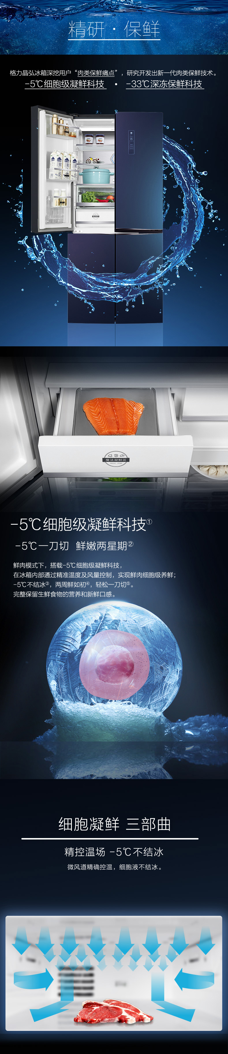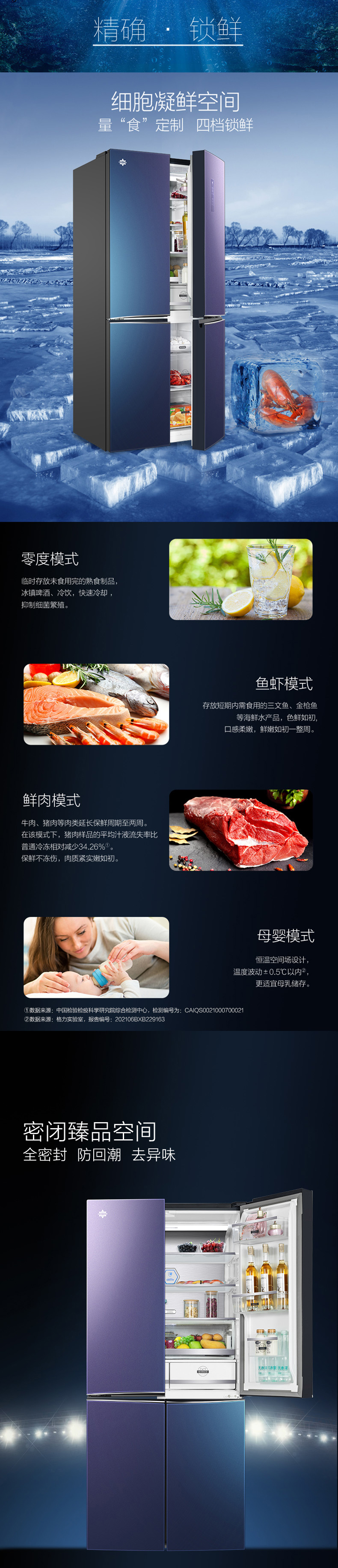 針對每種食材進(jìn)行精細(xì)化分區(qū),定制專屬保鮮艙,涵蓋肉類保鮮、果蔬保鮮、母乳儲存、干貨儲存以及除菌凈味五個維度,確保每一件食材的新鮮儲存