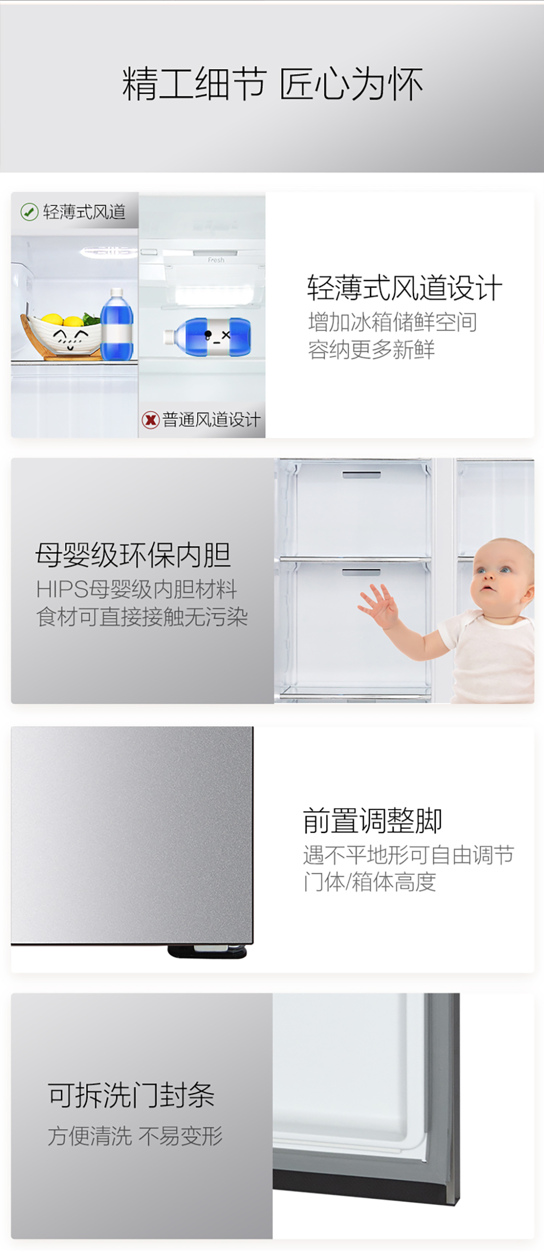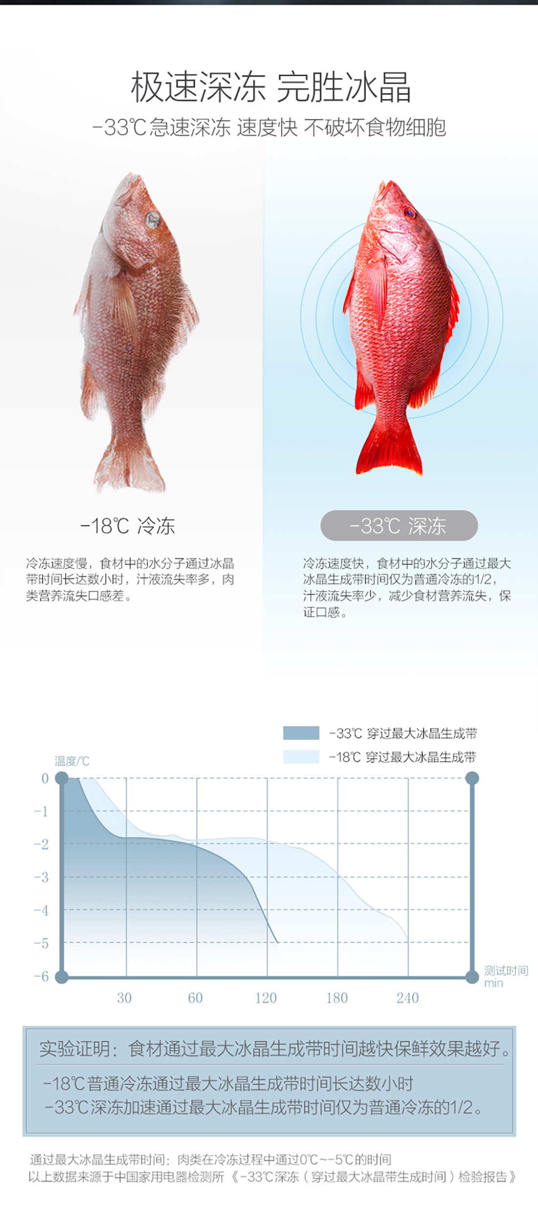 搭載-33℃深凍鎖鮮科技,肉汁飽滿更長久。采用離子長效抗菌凈味,抗菌率高達99.9%。3D沐風,風冷養(yǎng)鮮,無需鑿霜。