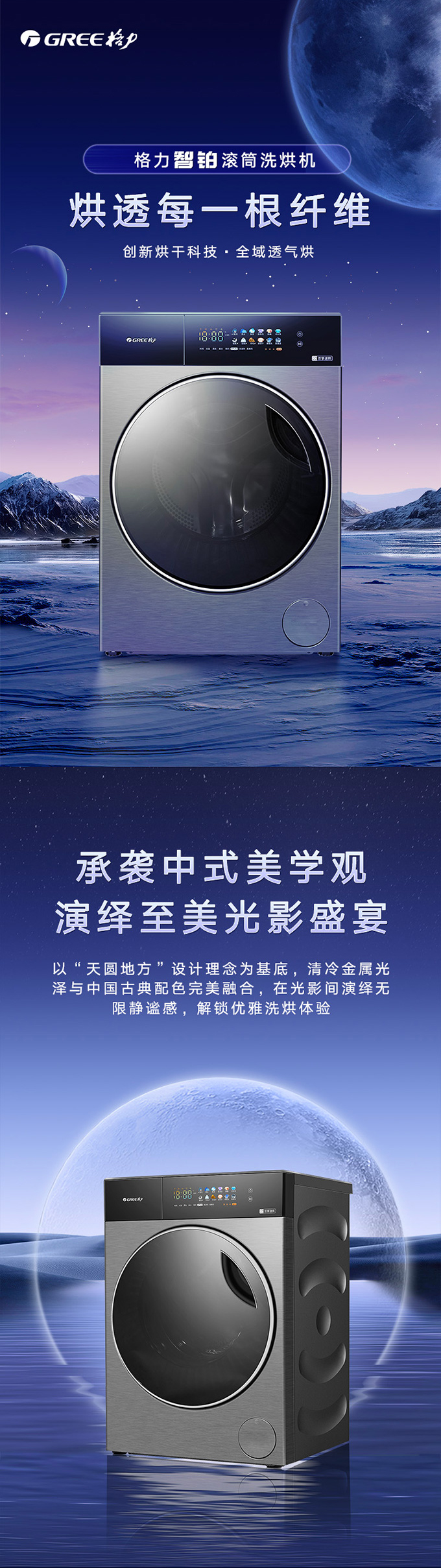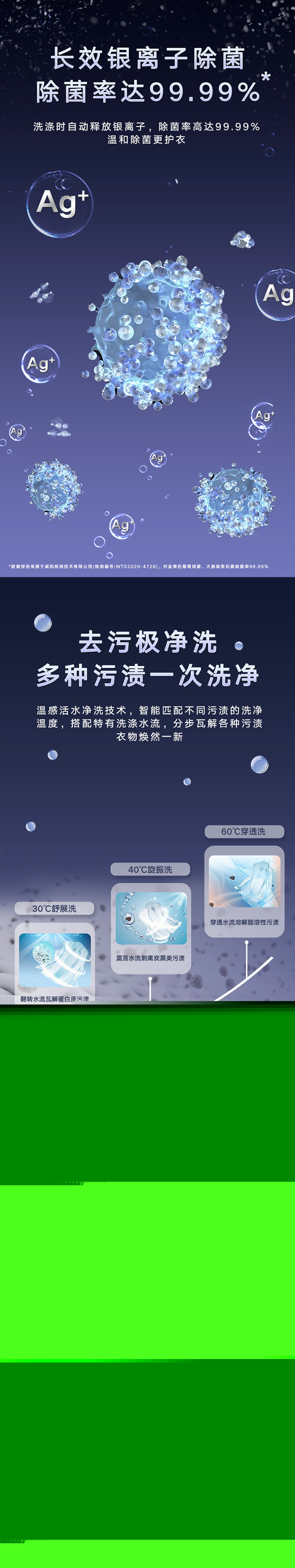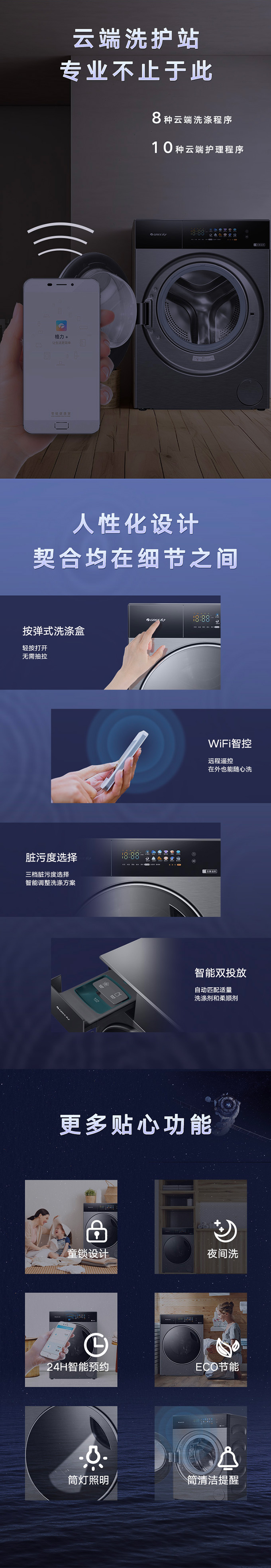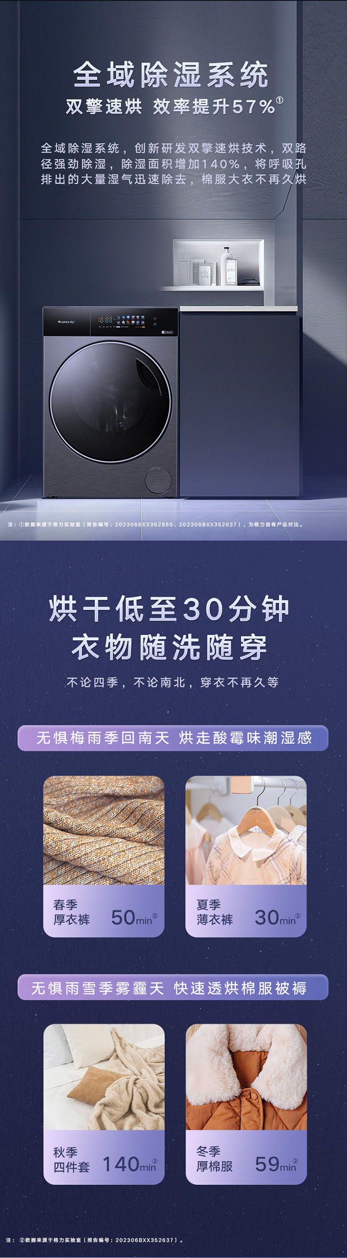 全域透氣烘,衣物不在悶著烘。AI智能感應,臟污一鍵洗凈。