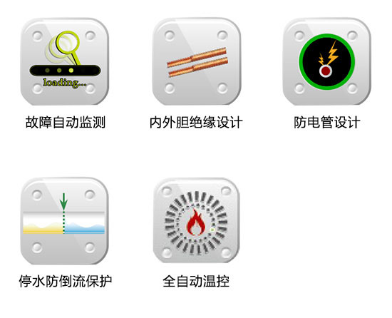 配有漏電開(kāi)關(guān)保護(hù)、防電管設(shè)計(jì)、意外漏電保護(hù)、停水防倒流保護(hù)、超壓保護(hù)等多項(xiàng)保護(hù)功能,讓您使用安全無(wú)憂。