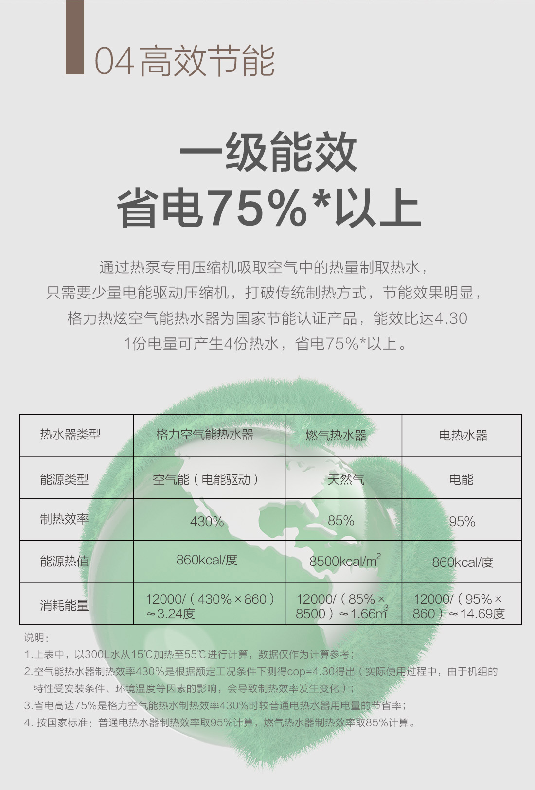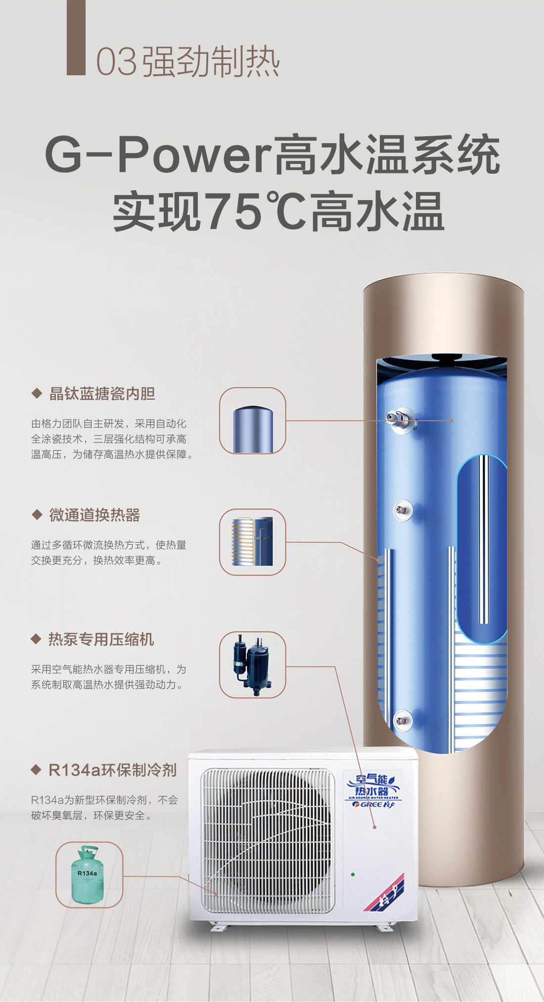 高溫大水量,沐浴暢快享,搭載G-power高水溫系統,成就水溫更高,水量更大的空氣能熱水器,更達1級能效,省電高達75%,全家人暢快享受的沐浴選擇。